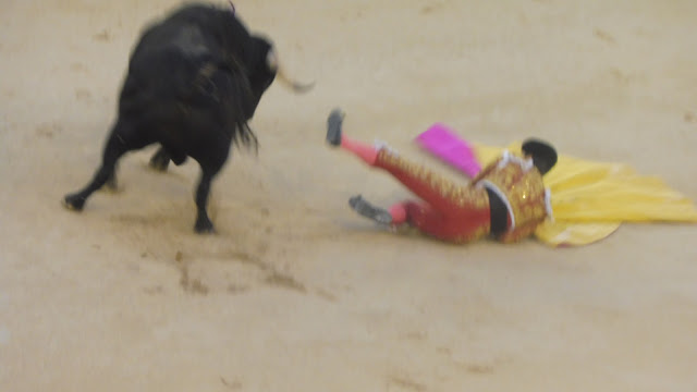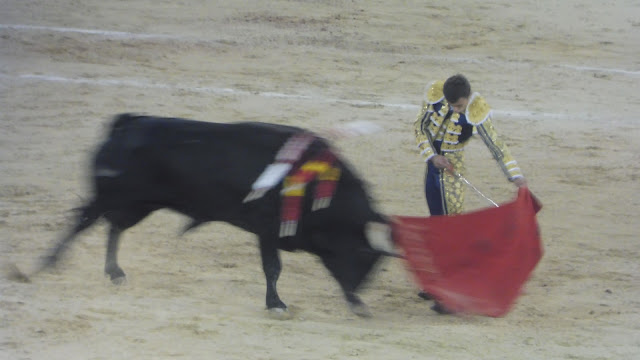 Había otra presentación, una más, la de Cristobal Reyes, el jerezano que quiso agradar desde el minuto uno, pero en Madrid no solo vale el arrojo y a un nobel hay que encauzarlo en la importancia del coso que pisa. Como dijo D. Juan Tenorio al capitán Centellas. Yo los muros escalé, la virtud escarnecí, por donde quiera que fui amarga huella dejé, Y el de Jerez fue una copia de D. Juan, Se fue a portagayola y si no se tumba y lanza el capote para afuera hubiera habido tragedia. Protagonizó un tercio de banderillas, una bandelrilla en la primera entrada un par desigual con toma del olivo en la segunda y otro de aquella manera con otra toma del olivo, dos pares y medio que desataron un broncazo. Eso sí consiguió algo muy difícil, que le cogiera el novillo, una voltereta por invadir la trayectoría de su oponente y de la colocación mejor no hablar.