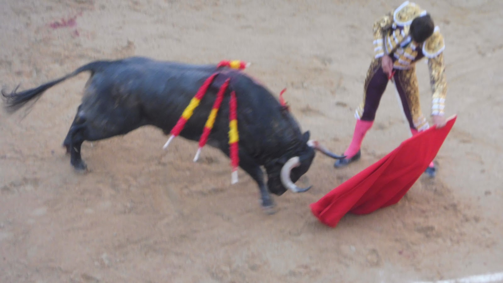CURRO DIAZ. Bajonazo y descabello. Palmas. Pinchazo hondo y estocada desprendida. Saludos.